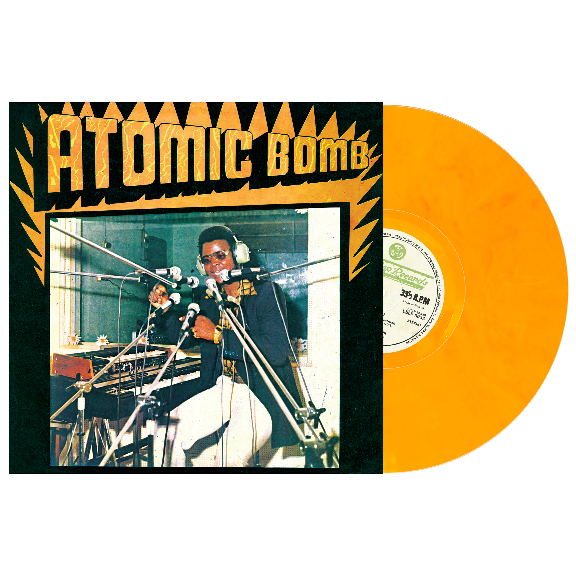 This is a limited color edition of William Onyeabor’s ATOMIC BOMB. 10 years later, the music still EXPLODES.