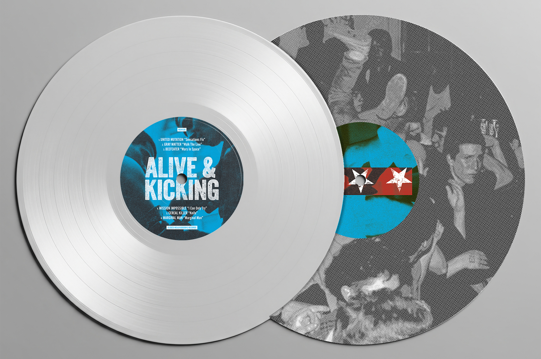 we have reissued the long out of print "Alive & Kicking" EP. in the first of what will be three 3 releases. This time around, "Alive & Kicking" is being offered in a limited edition one sided colored vinyl 12" and cassette formats for the first time in 40 years. The bands included are Gray Matter, Marginal Man, Beefeater, Cereal Killer, United Mutation and Mission Impossible--all unreleased tracks.